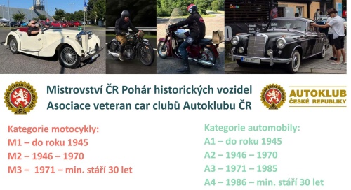 Mistrovství České republiky Pohár historických vozidel Asociace veteran car clubů Autoklubu ČR letos vstupuje již do 32. ročníku. Kalendář tradičně tvoří deset soutěžních podniků. Ředitelství Poháru na tuto sezónu připravilo také některé změny. Namísto tří jsou automobily rozděleny do čtyř kategorií. Nově do Poháru byla zařazena soutěž, kterou pořádá AUTOMOTOKLUB JIHLAVA v AČR.