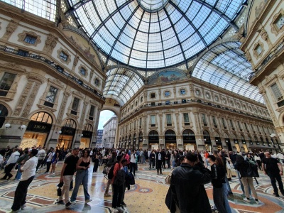Galleria Vittorio Emanuele II je krytá pasáž z let 1865-1877, kterou projdete od Duoma k La Scale. Litina, sklo, mozaiky pod nohama. Na podlaze je býk – tradice říká, že když se na něm třikrát otočíte, přinese to štěstí. Turisté to berou vážně. Pasáž je domovem Prady, Gucci a historických kaváren Cova (1817) a Marchesi (1824).