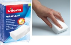 Zázračná houbička pro snadné odstraňování skvrn z většiny tvrdých povrchů pouze vodou. Není potřeba použití chemických prostředků. Tato houbička Vileda snadno odstraňuje skvrny od čaje, kávy, pera nebo vodní kámen. Může být použitá na většině tvrdých ploch v kuchyni a v koupelně. Lze ji použít také na stěny. Je složená ze 100% pryskyřice a čistí pouze vodou.