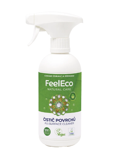 Tip FeelEco: Vyzkoušejte univerzální FeelEco Čistič povrchů s 99% podílem přírodního původu –který využijete jak v kuchyni, tak třeba také koupelně a dalších místnostech.