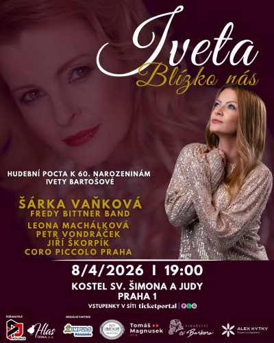 Výjimečný koncert „IVETA: Blízko nás“ se uskuteční 8. dubna 2026 od 19:00 a nabídne divákům silný, emotivní hudební zážitek plný energie, nostalgie a úcty k odkazu jedné z nejvýraznějších osobností české popové scény.