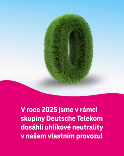 Skupina Deutsche Telekom ke konci loňského roku dosáhla uhlíkové neutrality z vlastního provozu, a to jako první nadnárodní poskytovatel telekomunikačních služeb na světě. T-Mobile ke skupinové misi přispívá mimo jiné úsporou až 30 GWh energie ročně. Od roku 2017 snížila skupina objem emisí CO o více než 94 % asi 28 mil. tun a to stovkami dílčích projektů na národní i nadnárodní úrovni, včetně kompletního přechodu na energii z obnovitelných zdrojů na všech trzích. Pokračuje tak v dlouhodobé misi, spojovat technologický i ekonomický růst se zodpovědností vůči životnímu prostředí.