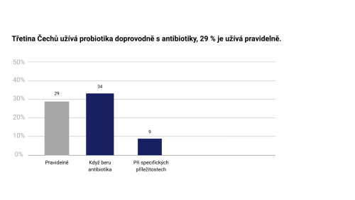 Třetina Čechů užívá probiotika doprovodně s antibiotiky, 29 % je užívá pravidelně.