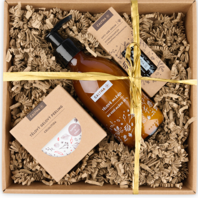 Luxusní pečující sada Caltha je důkazem, že domácí wellness může mít profesionální úroveň. Elegantní balení ukrývá tři vysoce účinné přírodní produkty, které společně tvoří komplexní rituál pro pleť i tělo. Darujte Anti-age sérum, které dodá pleti intenzivní hydrataci a viditelně ji vyhladí, zatímco tělové mléko s BIO kozím mlékem zklidní i citlivou pokožku a zanechá ji hebkou a vyživenou. Gelový peeling s kofeinem a chilli podpoří mikrocirkulaci a pomůže pokožce získat pevnější vzhled. Potěšte ženu, která si chce dopřát jen to nejlepší.