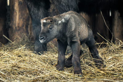 Sameček takina indického se narodil 4. března. Je to první potomek nezkušené samice, která se o něj však stará přímo bravurně. Pokud vše půjde dobře, nebude posledním letošním přírůstkem ve stádě. Foto Petr Hamerník, Zoo Praha