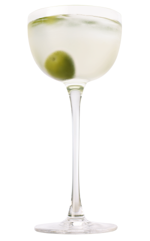 Ingredience vložte do míchací sklenice s ledem a míchejte. Přeceďte do vychlazené skleničky a ozdobte kapkami olivového oleje Arbequina a olivou Castelvetrano.