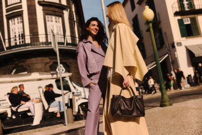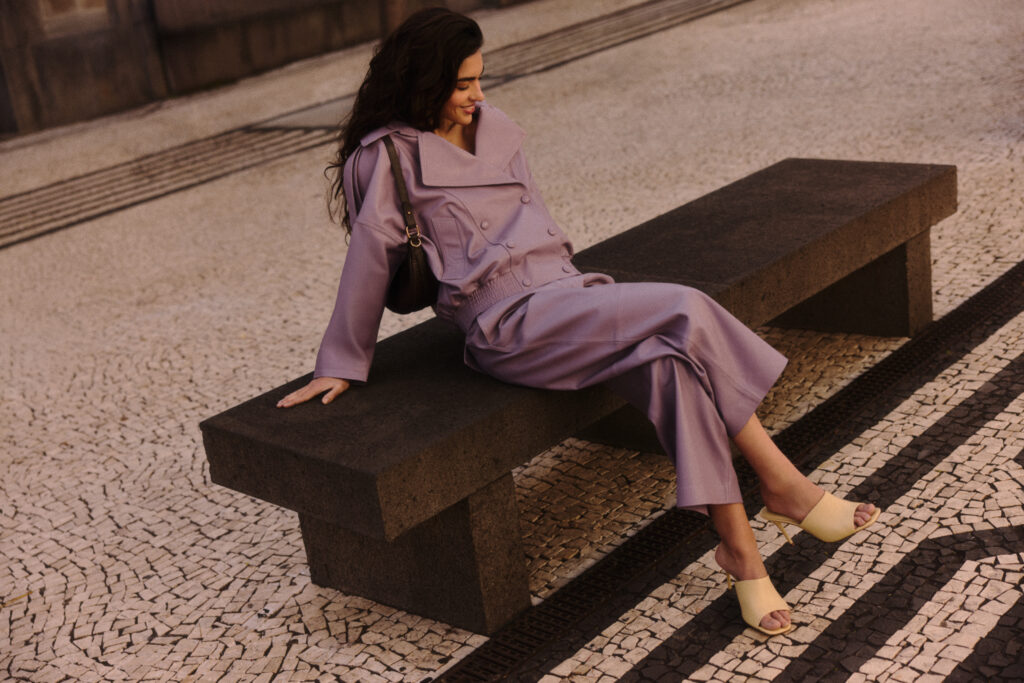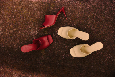 Druhý kód staví na architektonických formách, výrazných proporcích a geometrických střizích. Trenčkoty, saka, kalhoty i šaty z této linie působí téměř sochařsky díky promyšleným liniím, dekorativnímu prošívání a vyšívaným detailům. Monumentální siluety podtrhuje snížený pas, rozšířená ramena i midi délky sukní. Zkrácené kalhoty odhalují kotníky a nechávají vyniknout sandálům na podpatku i mule botám z barevné palety kolekce. Nové semišové lodičky, sandály a mule boty pro sezónu SS26 přinášejí svěží interpretaci jarní lehkosti, v níž se propojuje jemná struktura, nenápadná smyslnost a sofistikovaný matný povrch.