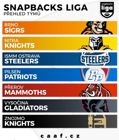 V sobotu 28. března se opět rozjede americký fotbal na českých trávnících. Do Snapbacks ligy nastoupí sedm týmů, kdy nováčkem bude vítěz loňské 2.Ligy Brno Sígrs. V lize naopak nově chybí Bratislava Monarchs a tak jediným slovenským týmem Snapbacks ligy jsou Nitra Knights. Právě na stadionu Nitry se 18. července odehraje finálový Tipsport Czech Bowl XXXIII.