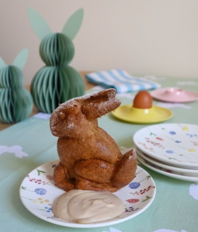Zajíček, který je lahodný, ale zároveň pěkný na pohled, potěší děti i dospělé. Pružná forma pomáhá vytvořit čistý tvar a usnadní vyjmutí hotového moučníku. Na závěr stačí přidat mašličku jako drobný slavnostní detail.