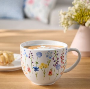 Velký hrnek s objemem kolem 650 ml je ideální pro pořádnou porci horkého nápoje. Doplní květinovou sadu z kolekce Tchibo a podpoří veselou jarní atmosféru.
