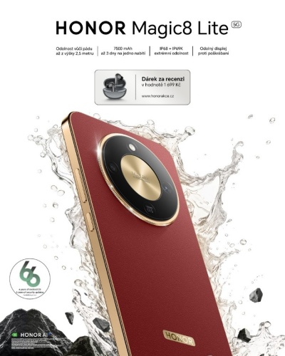 Jako první v řadě plánovaných akcí se HONOR zaměřuje na jeden ze svých nejnovějších modelů – HONOR Magic8 Lite. Zákazníci, kteří si tento smartphone zakoupí v období od 1. do 12. dubna 2026, mohou získat zdarma sluchátka HONOR Choice Earbuds S8 v hodnotě 1 699 Kč po udělení recenze a základní registraci na novém webu. Akce se vztahuje na nákupy u všech mobilních operátorů a u autorizovaných prodejců (Alza, Datart, MobilPohotovost, Planeo a Setos).