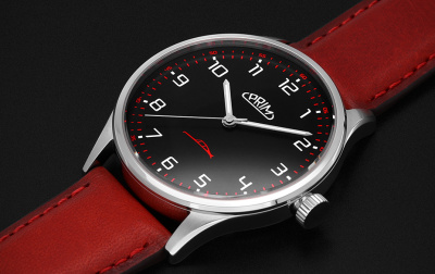 Sportovní charakter podtrhuje číselník s jemnou siluetou vozu, kterou navrhl designér Lukáš Tláskal. Černý základ doplňují výrazné barevné akcenty – bílá, červená nebo zelená – vždy v kombinaci se stříbrnými luminiscenčními ručkami. Celek chrání odolné pouzdro z nerezové oceli a safírové sklo s antireflexní úpravou.