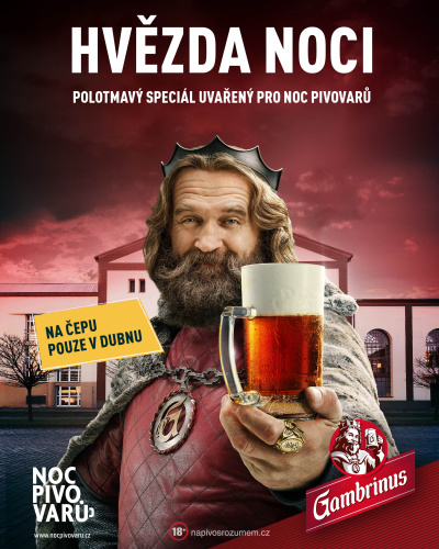 - Gambrinus Hvězda noci 12°. Alkohol 5,1 % obj., stupňovitost 12°P, Barva 40 EBC, hořkost 33 BU. Sypání – plzeňský, karamelový, pražený ječmen. Chmelení – Sládek.