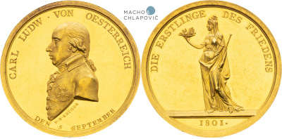 Dražit se bude také mimořádný soubor tří medailí arcivévody Karla Ludvíka z let 1798–1801, ražený v Drážďanech. Soubor tvoří zlatá medaile vydaná při příležitosti oslav jeho 30. narozenin a uzavření míru v Lunéville, doplněná o stříbrnou a měděnou medaili na vítězství nad Francouzi. „V dražbě bude nabídnut unikátní soubor tří medailí jedné z nejvýznamnějších postav rakouských dějin, arcivévody Karla Ludvíka. Ten vešel do dějin jako legendární ‚vítěz od Aspernu‘ a vůbec první přemožitel Napoleona Bonaparta,“ uvádí Elizej Macho.