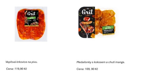 V nabídce najdete jak výraznější varianty, například marinované vepřové Back Bacon, tak i méně tradiční kombinace chutí. Vepřové medailonky s kokosem a chutí manga přinášejí lehce nasládlý tón, zatímco medailonky s brusinkami kombinují sladkost s jemnou kyselostí. Milovníci klasiky pak mohou sáhnout po vepřové krkovici marinované na pivu, která patří mezi stálice grilování.