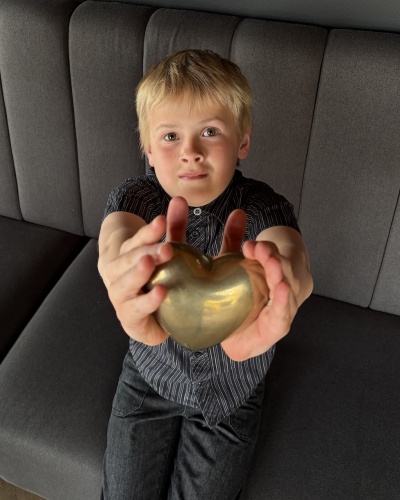 Bernardovu cenu představuje velké zlaté srdce a certifikát. Jindřich, který je fotbalista, od pivovaru dostal ještě kopací míč a fotbalový dres.