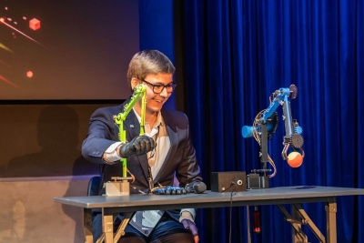 1. místo – tým MechSuit, Masarykovo gymnázium Plzeň: malé dvojče mechanického ramene pro intuitivní a snadnější ovládání reálného mechanického ramene.
