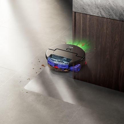 Součástí ukázky byla i dokovací stanice, která zajišťuje kompletní údržbu – automaticky vyprázdní sběrnou nádobu na suché nečistoty robota a jeho nádržku na špinavou vodu, vyčistí mokrý rotační kartáč z mikrovlákna teplou vodou, doplní robotu čistou vodu a nabije jeho baterii. Nemusíte pohnout ani prstem – vše probíhá zcela automaticky. Po dokončení úklidu dodá dokovací stanice vodu ohřátou na 60 °C, aby důkladně vyčistila mokrý rotační kartáč, a poté jej vysuší horkým vzduchem o teplotě 45 °C, čímž se eliminuje vlhké prostředí, kde se mohou množit bakterie.